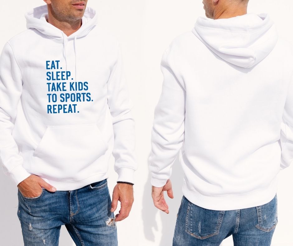 “Eat Sleep Take Kids to Sports Repeat” – Funny Men’s Hoodie