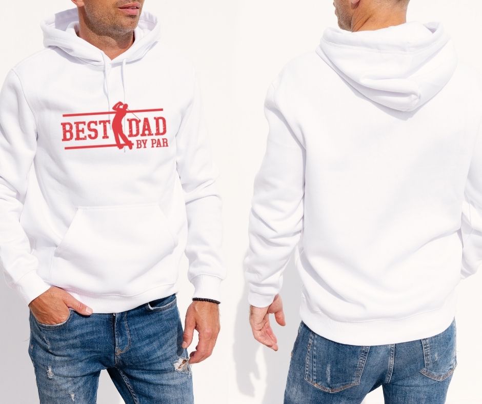 Design: “Best Dad by Par” with golfer silhouette, printed in premium vinyl