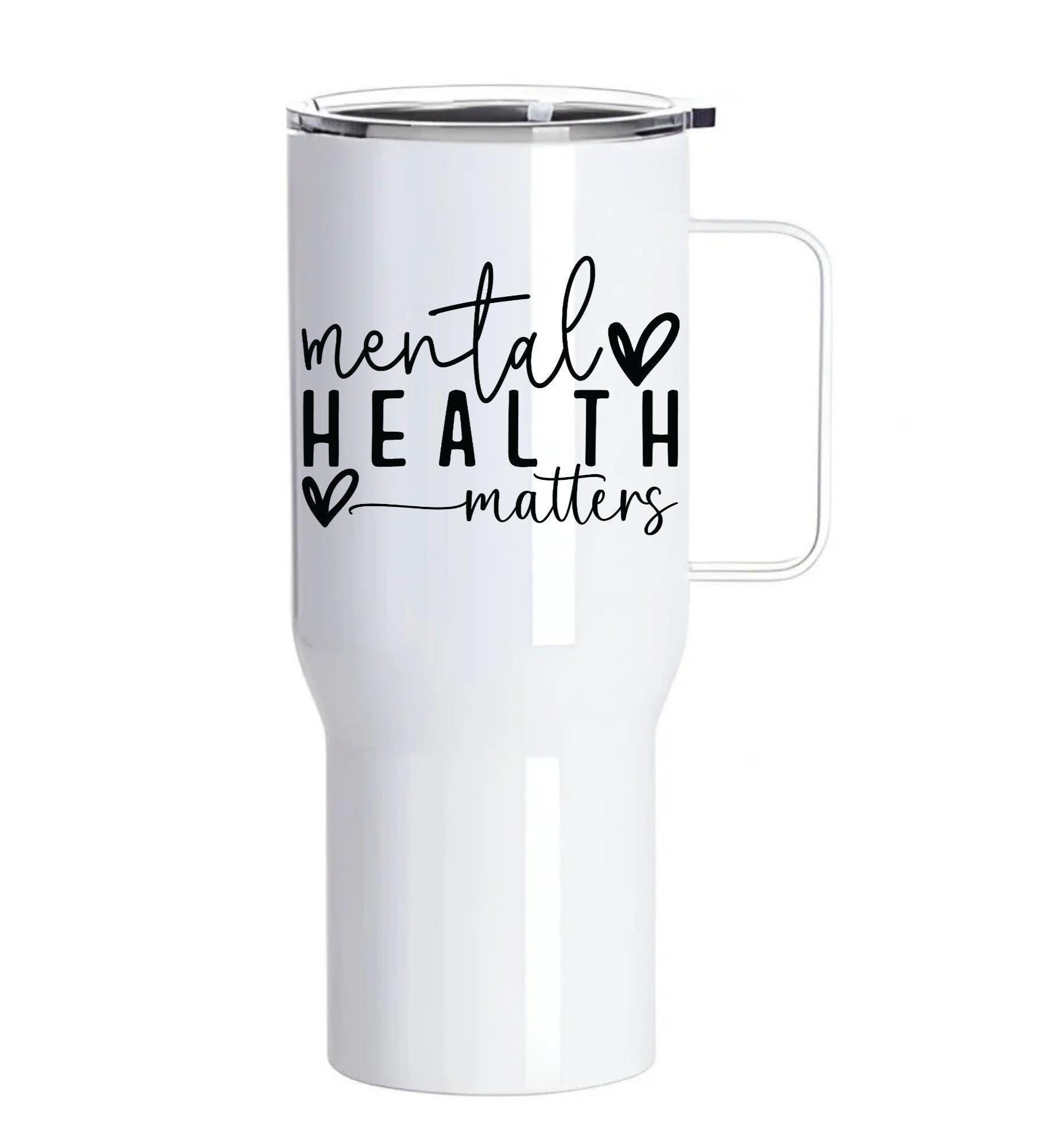 Sip with purpose and spread positivity with our “Mental Health Matters” custom stainless steel tumbler.